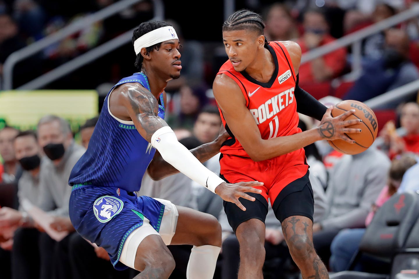 HOUSTON – Jarred Vanderbilt was giving his postgame comments in a cramped side locker room after the Timberwolves beat the Rockets 141-123 when Anthony Edwards flew open the door.